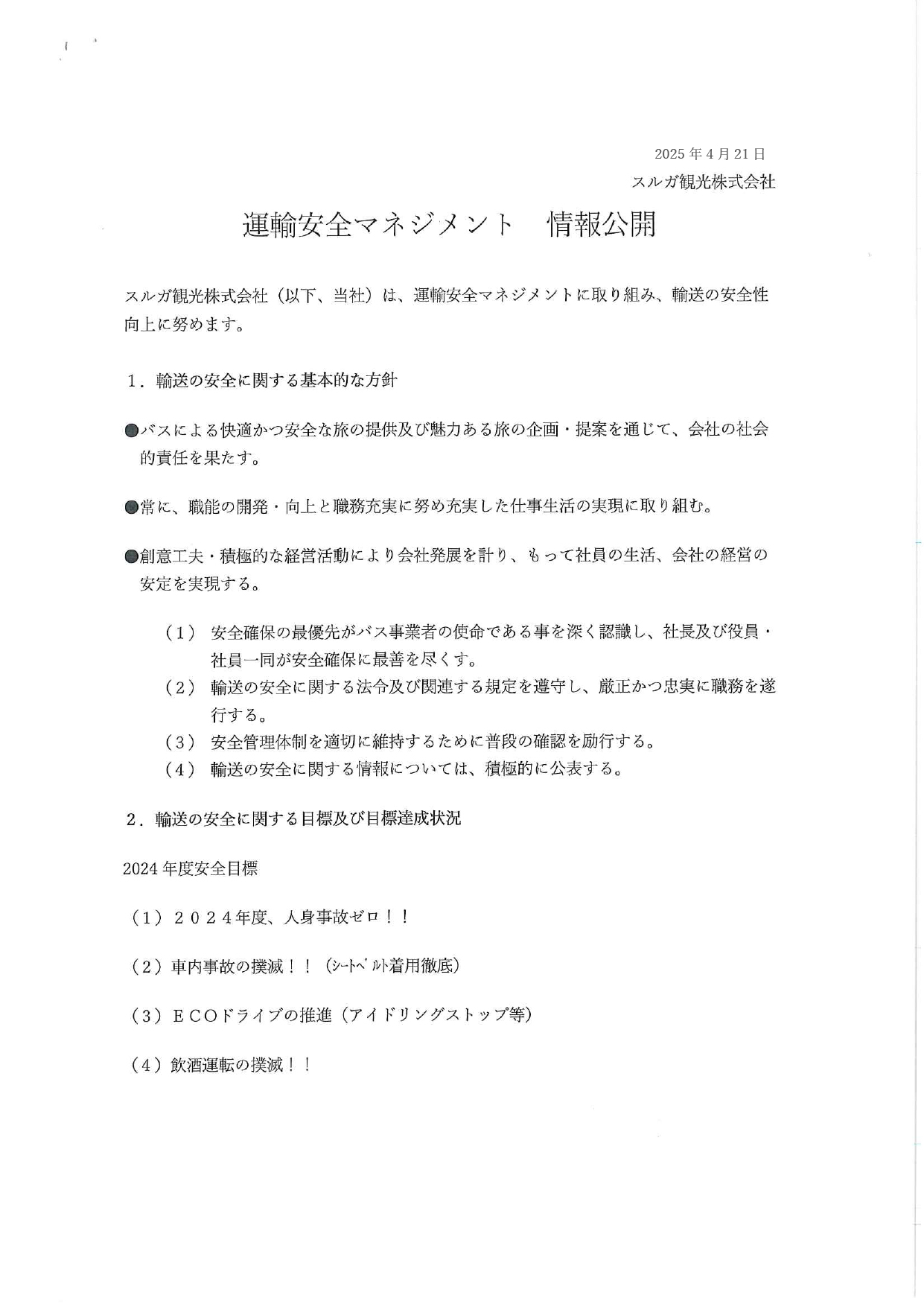 輸送の安全への取り組み状況